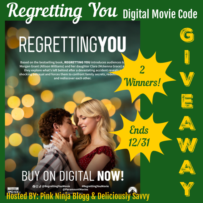 Welcome to The 'Regretting You' Digital Movie Code Giveaway! 2 Winners -- ends 12/31 !