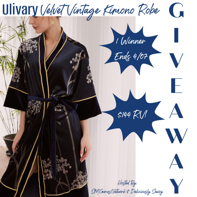 1 Lucky Winner will win an Ulivary Velvet Vintage Kimono Robe Valued At $144!