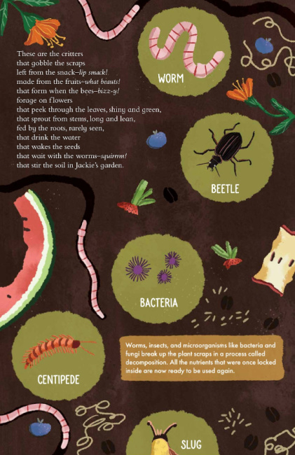 Written in the cumulative style of “The House that Jack Built,” the catchy repetitions and engaging illustrations are interwoven with scientific facts that teach young readers about the life cycle of a plant, the natural processes that create new soil, and the importance of composting for a sustainable garden.